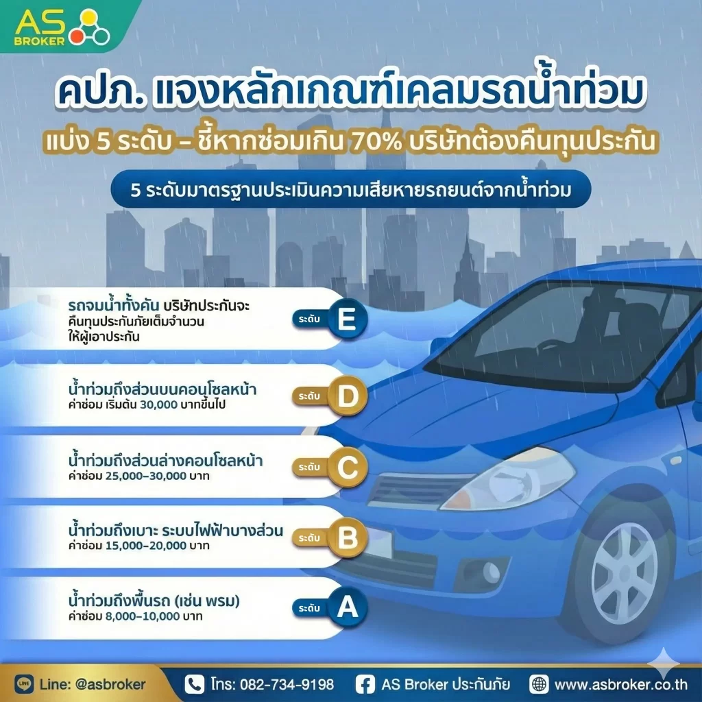 ✅ สรุปหลักเกณฑ์ 5 ระดับเคลมรถน้ำท่วม